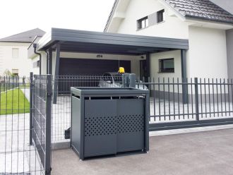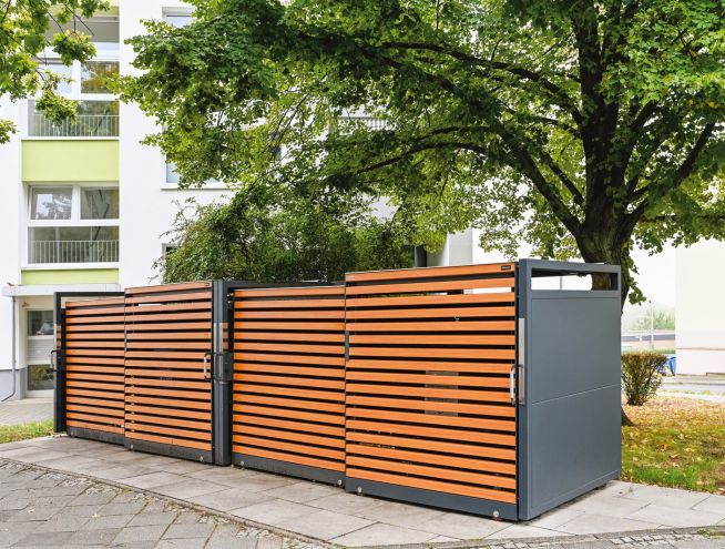 Vores bæredygtige, stabile og holdbare affaldsskjulere er både mærkede og certificerede, samt bliver produceret efter bæredygtige standarder (DIN EN 1090). Skraldespande i metal garanterer dig sikker opbevaring.