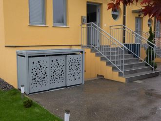 Vi har mange eksempler på elegante og flotte løsninger til at skjule dine skraldespande. Både til private husstande samt til større projekter som boligforeninger, erhverv, mm.