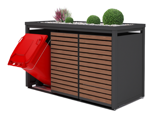 Uanset om du har brug for en skraldespandsskjuler til 240 L spande, en containerløsning til 770/1100 L, eller en mere avanceret løsning som FixOUT monteringssøjler, HideOUT nedsænkelige affaldssystemer eller BioBOX til bioskrald, så har vi en løsning, der passer til dit behov.