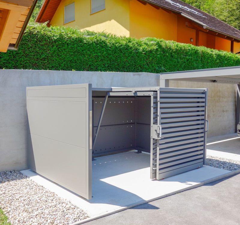 Hos os får du kun skraldespandsskjulere i høj kvalitet. Vi leverer mange forskellige løsninger, både til private, erhverv, boligforeninger og mange andre. Vores løsninger findes til skraldespande i 120 liter, 240 liter, med lås, vippehåndtag/klap, fladt tag, sedum(planter) tag, klaptag, med og uden vippeanordning, i metal, lamellook, lærkelister, og i mange forskellige farver.